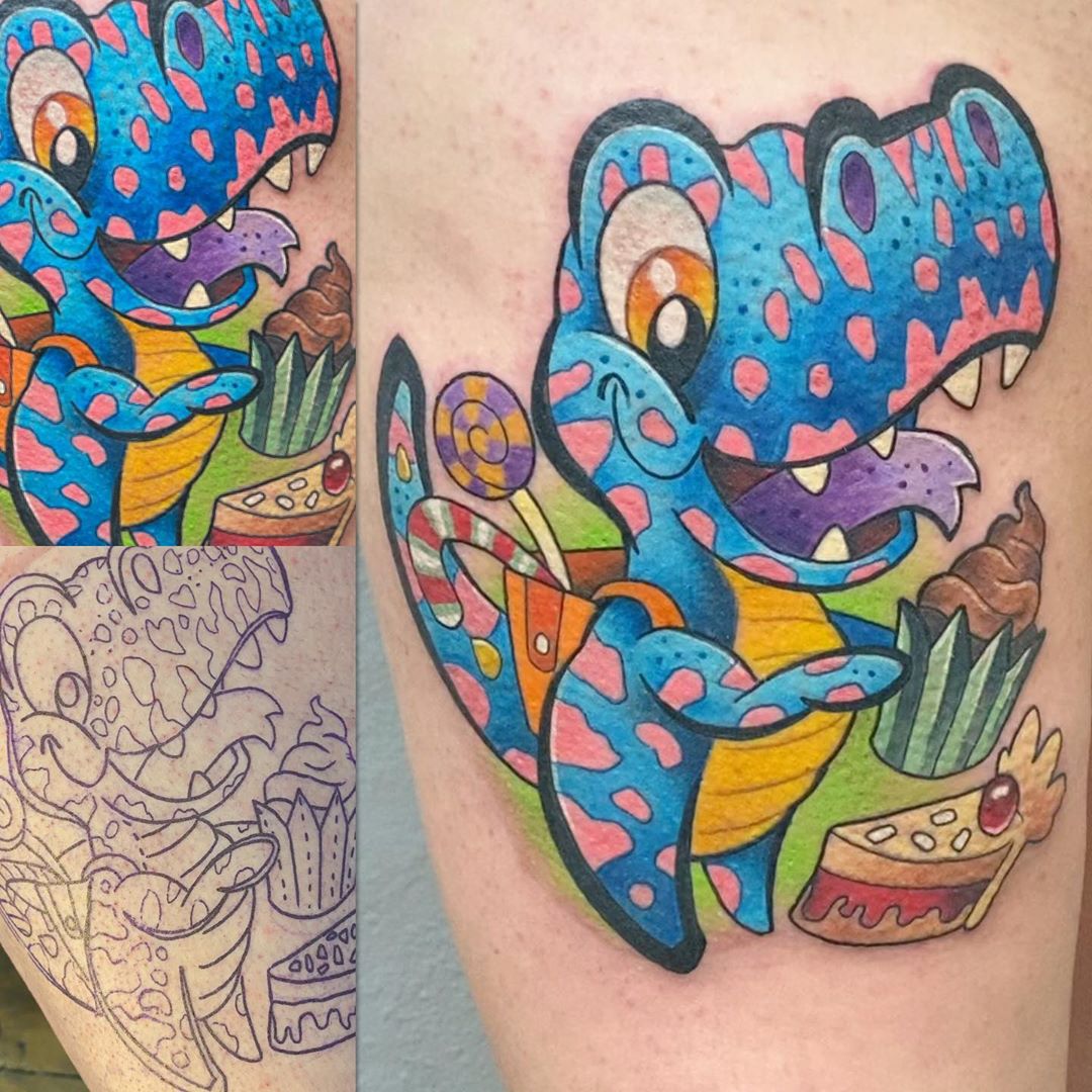 Cute Dino Tattoo In 2023 Dinosaur Tattoos Animal Sleeve Tattoo Rainbow Tattoos